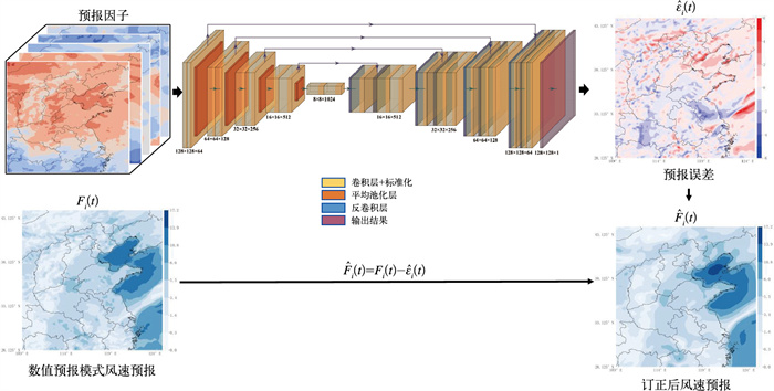 图 4 灾害大风U-Net神经网络结构示意图(Yang et al, 2023) Fig. 4 Schematic diagram of U-Net neural network structure for disaster gale (Yang et al, 2023) |