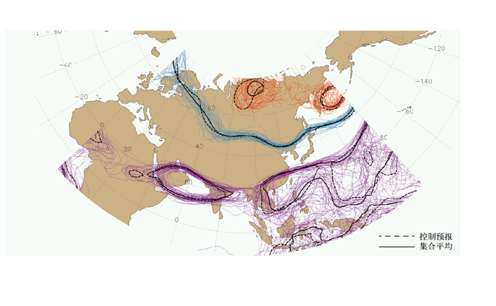 值得一提的是,为促进全球集合预报资料共享和研究,WMO组织的TIGGE计划自2005年起建立了包含ECMWF、NCEP、CMA等十余个中心集合预报数据的共享库, 分别由ECMWF、NCAR和CMA承担。在项目实施的10年期间,各个中心根据自己的能力和条件,共享了多达73个气象要素的全球集合预报,为气象学界开展概率预报研究和服务提供了重要支撑(Swinbank et al,2016)。TIGGE的数据分析表明,不同中心集合预报各有优势,若进行多系统集成(如简单合并或加权平均),可在一定程度上提高预报技巧和可靠性。这印证了多模型集合的价值,也为各国改进各自系统提供了参考。另外,2015年启动的S2S计划扩展了集合预报在次季节至季节尺度的应用,通过汇集各中心延伸期集合预报(时效长达30~60 d)来研究热带大气季节内振荡(MJO)、季风等低频变率的可预报性。这些国际合作项目体现出集合预报在气象大数据共享时代的重要意义。