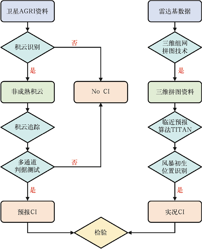 图 9 基于卫星观测的CI临近预报框架图 Fig. 9 Framework diagram of CI nowcasting based on satellite observations |