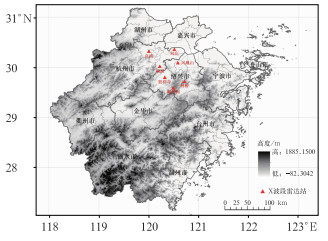 图 1 浙江地理信息和X波段相控阵雷达站分布 Fig. 1 Geographic information and distribution of X-band phased-array radar stations in Zhejiang Province |
