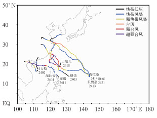 图 5 2024年登陆我国的台风路径 Fig. 5 Tracks of typhoons making landfall in China in 2024 |