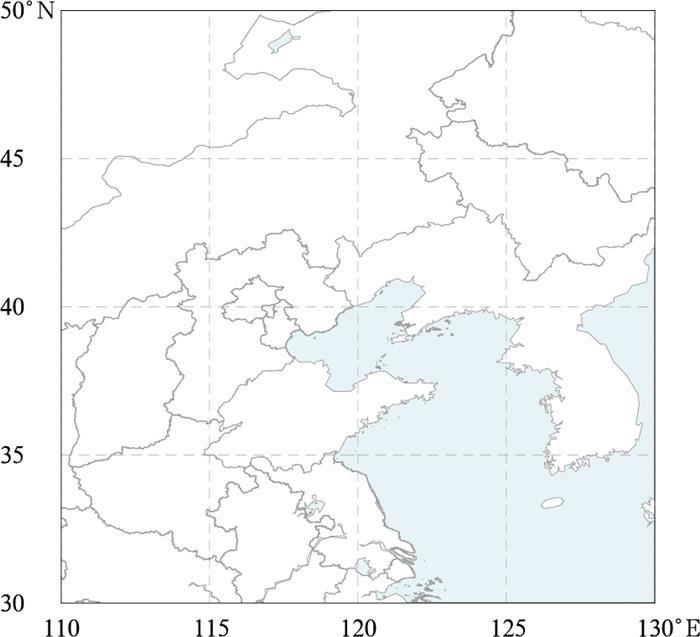 1.2 方法 1.2.1 黄渤海台风定义本文结合黄海和渤海的地理位置,以及西太台风主要影响我国中纬度区域的范围,规定30°~50°N、110°~130°E为黄渤海区域(图 1)。以西太台风中心是否进入规定的区域为判定标准,在台风最佳路径记录中,有任一时刻的西太台风中心位置位于黄渤海区域内时,即被认定为黄渤海台风。
