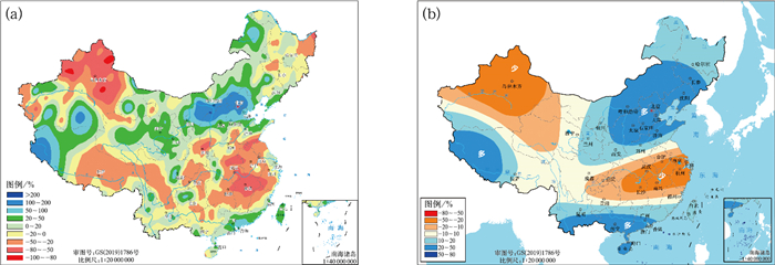 图 1 2025年(a)夏季中国降水量距平百分率分布及(b)3月底发布的预测结果 Fig. 1 (a) Distribution of precipitation anomaly percentages in China in summer and (b) corresponding prediction issued at the end of March in 2025 |
