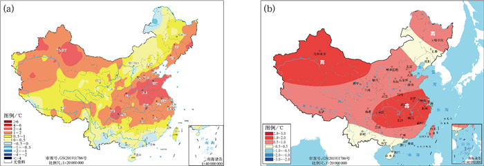 图 3 2025年(a)夏季中国气温距平分布及(b)3月底发布的预测 Fig. 3 (a) Distribution of temperature anomalies in China in summer and (b) corresponding prediction isssued at the end of March in 2025 |