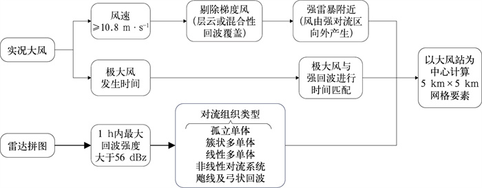 图 2 雷暴大风判定流程 Fig. 2 Flow chart of thunderstorm gale determination |