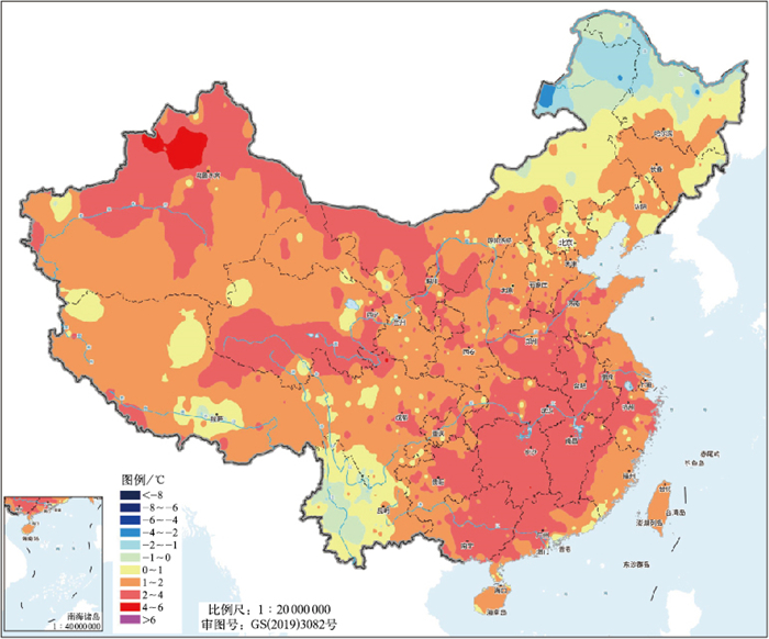 12月,全国平均气温为-1.2℃,较常年同期(-3.0℃)偏高1.8℃,为1961年以来历史同期第二高(国家气候中心,2026)。从平均气温距平的空间分布来看,内蒙古东北部、黑龙江大部、云南等地气温接近常年或偏低1~2℃,全国其余大部地区偏高1~4℃,新疆北部偏高4~6℃(图 3)。此外,河南、山东、湖北、湖南、四川等省份平均气温为历史同期最高,长沙、湘潭、荆州和衢州等地有19个国家站最高气温突破当月极值(图略)。