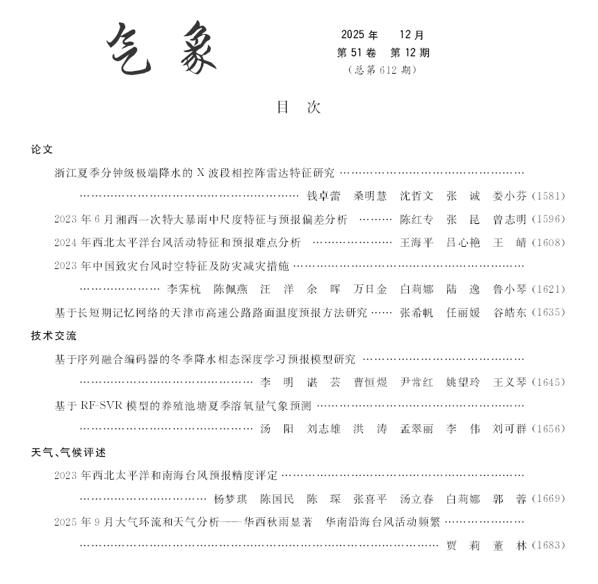 利用1949—2024年中国气象局台风最佳路径资料、2024年中央气象台台风路径和强度实时业务资料、欧洲中期天气预报中心ERA5再分析资料等,对2024年西北太平洋和南海台风活动的主要特征进行分析。结果表明:2024年台风生成数和生命史平均极值强度均接近气候平均,生成源地偏北、偏西;登陆个数偏多,强度偏强,登陆地段集中;秋季台风活跃;台风深入内陆,造成大范围强降水。中央气象台主观路径预报整体上优于日本和美国;台风强度预报误差大于日本,但小于美国。业务预报中的重要难点问题包括:由于模式对台风登陆后的复杂结构变化及其所受的引导气流影响难以把握,导致路径预报产生较大误差,对此类过程的订正较为困难;台风残涡的陆上维持预报及其降水影响的预报;台风“摩羯”的快速增强及超强台风长时间维持预报等。