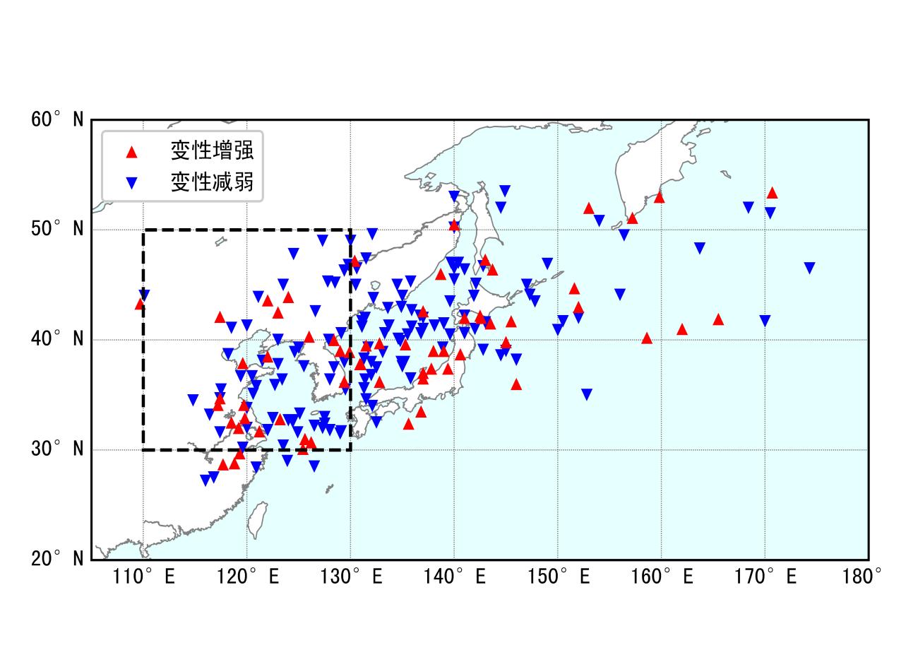 中文摘要: 利用中国气象局台风最佳路径数据,统计了1949—2020年进入黄渤海区域(30°~50°N、110°~130°E)台风(以下简称黄渤海台风)的气候特征。结果表明:年均有4.3个台风进入黄渤海区域,逐年黄渤海台风个数在西北太平洋台风中的占比呈现明显增加趋势,北上台风影响显著;黄渤海台风活动季为4—11月,从20世纪90年代开始出现向“秋季扩展”的趋势;黄渤海台风源地集中在5°~30°N、120°~160°E,近70年出现了连续向西迁移,以及80年代前逐步北移,90年代后伴随着“秋季扩展”南落的现象;远海路径进入黄渤海区域的台风最多,近海或登陆活动的转向、北上路径次之,登陆填塞、高纬西进或黄海西折路径相对较少;51.8%的黄渤海台风会发生变性,黄渤海变性台风中的28.6%在变性完成后至少会发生一次加强。变性加强过程主要发生在6—10月,其中8—9月最多,我国华东中南部和日本海南部周边为变性加强的两个集中发生地区。